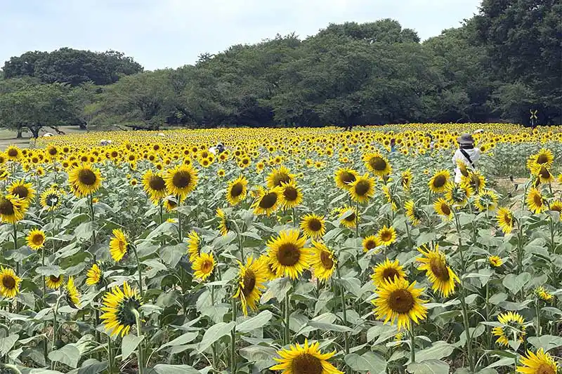 みんなの原っぱの中にある原っぱ東花畑では、花径30cmもの大輪の花を咲かせるハイブリッドサンフラワーという品種のヒマワリが見頃を迎えていました!(例年8月上旬頃が見頃です)