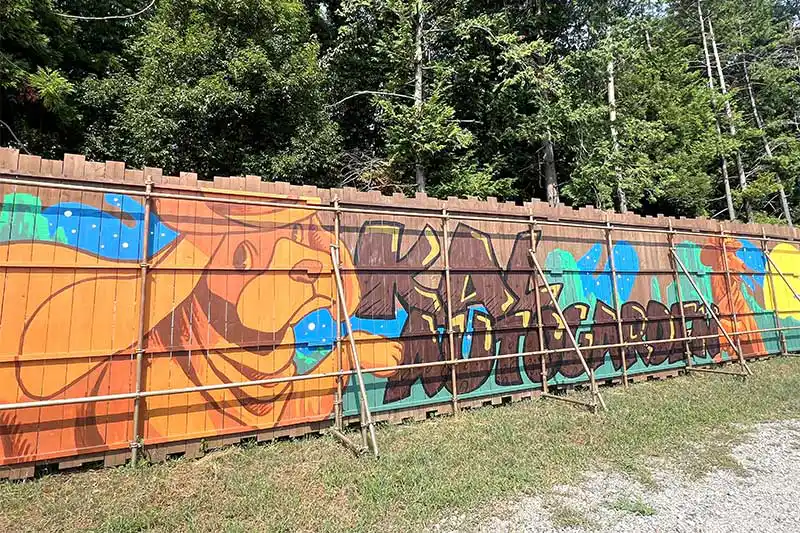 場内のウエスタンポイントを探していると、目に飛び込んできたのはウォールアート!アート/ライブペイントなどを手がけるクリエイターのモーターさんとジャンクアールさんの連作だそうです!キャンプ場の雰囲気に馴染んでますね!思わず写真を撮りたくなっちゃうフォトポイント☆