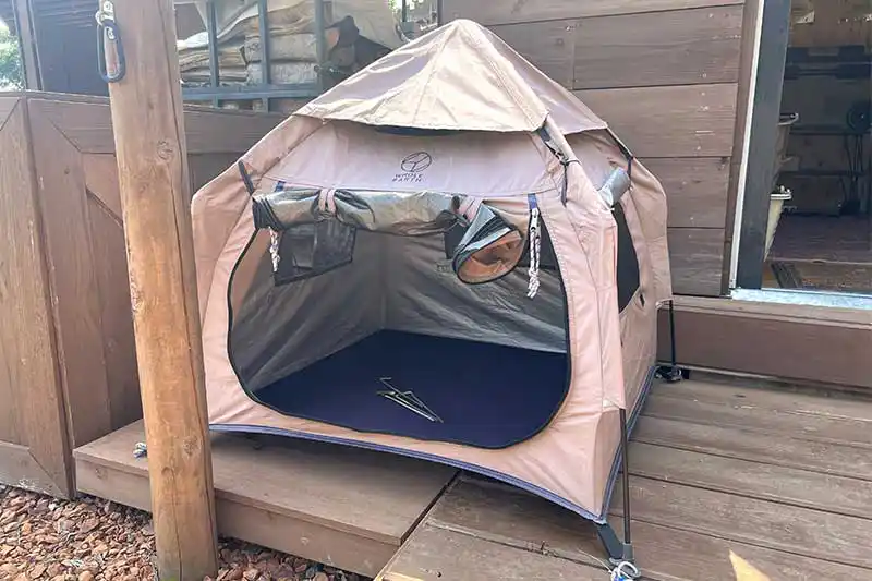 さらにおすすめの犬用アウトドアギアとして、ドッグテントがあるのをご存じでしょうか?ミニテントで見た目が可愛いだけでなく、災害時などワンちゃんの居場所にもなります!このテントも無料で貸し出ししてくれるそうですよ~!