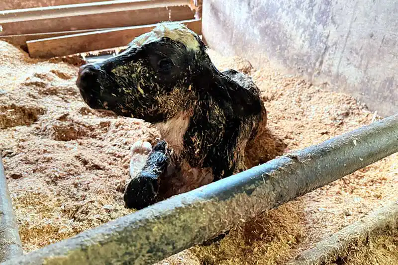 なんと!!気付けば生まれたばかりの「赤ちゃんうし」が!まだへその緒がついていて立ち上がれない状態だったので、おそらく生まれて30分~1時間以内!え~もう少し早かったら出産場面に立ちあえたかも??いやあ~残念… 何度も何度も転んでは立ち上がろうと頑張っている姿に、思わず応援せずにはいられませんでした。早熟性動物のパワーって凄いですね。