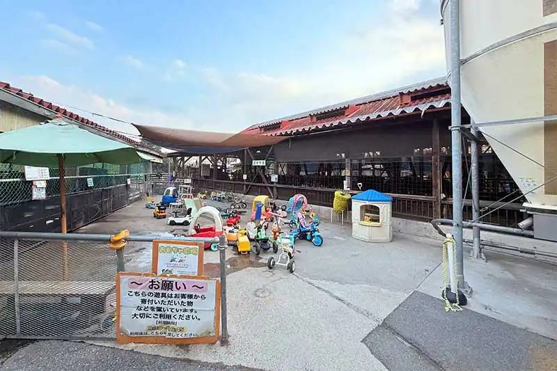 牛だけでなく、可愛いモルモットをはじめ、うさぎ、チャボ、ニワトリ、アヒル、ミニブタなど様々な動物も一緒に見学できます♪また、お子さま用のおもちゃ広場があり、手前にはパラソル付きの休憩スペースもあるのでファミリーにはもってこい!!動物たちとのんびり過ごす時間もなかなか良いですよ!