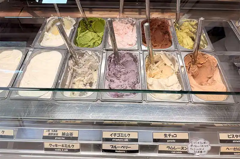 種類は、ミルク・抹茶・生チョコ・イチゴミルクの他、限定メニューなど常時10種類程が日替わり!!取材時は、珍しい狭山茶の味がありました♪ねっとり柔らかくとろける優しいお味で、滑らかな舌触りは格別です!これぞジェラート!本当に美味しい♪