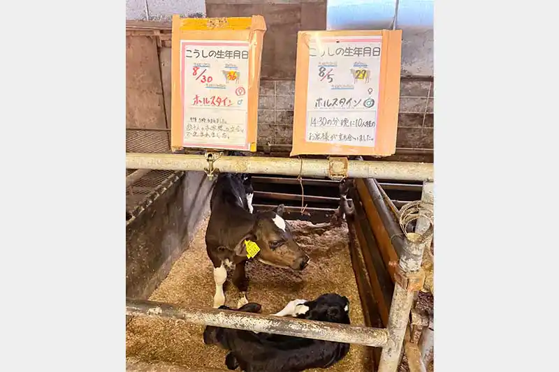 お隣はまだ生まれて1週間~1ヶ月の「こうし」!!性別・生年月日・コメントが書かれた説明書きがあるのが嬉しいですね。牛の出産は1年中なので、なんと!運が良ければ出産に立ちあえるかも!!見れるなら一度間近で見てみたい~!