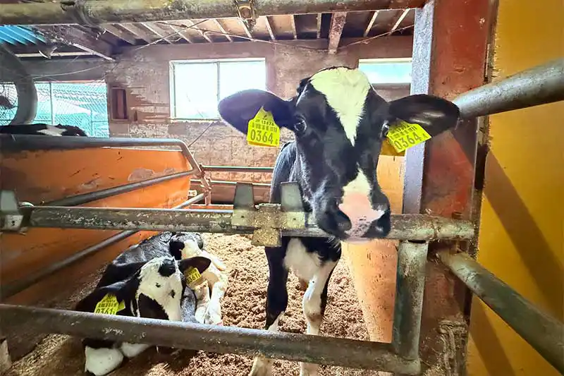 そのお隣も少し大きくなった「こうし」を育成中。人懐っこく自ら近寄ってきます。お目目が大きくて可愛い♪耳の番号で判別ができるようになっているそうですよ。