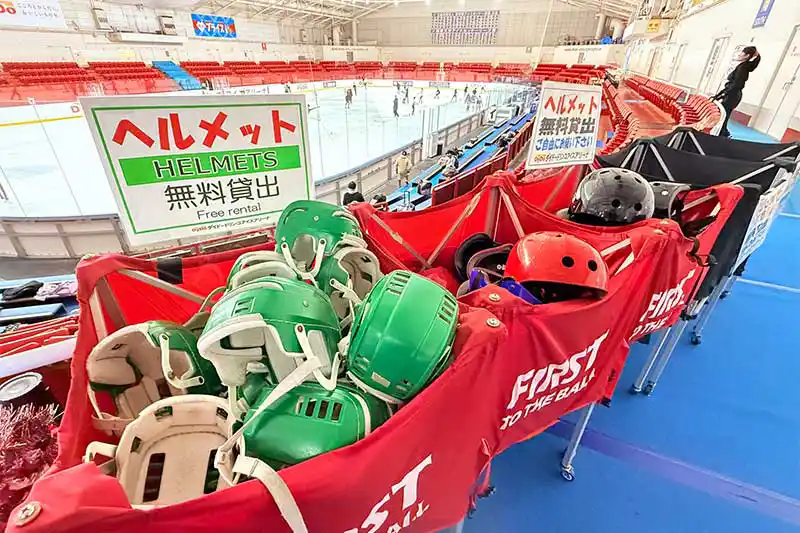 ヘルメットやひじひざあては無料で借りられます。サイズも色々揃っているので、初めてで転ぶのが怖い人はこれで安心!!ケガ防止のためにも長ズボンと暖かい服装も忘れずに!!