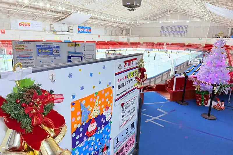 ダイドードリンコアイスアリーナは屋内リンクなので季節に関係なく、通年楽しめるところがポイント!夏の猛暑時にひんやりとしたアイスアリーナでスケートするのもオススメですよ~♪でも防寒対策は忘れずに! ※取材時は12月だったのでサンタさんがお出迎えしてくれました♪