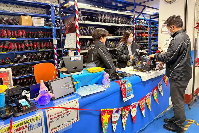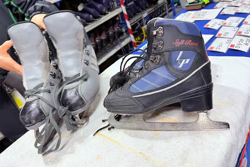 初めてでもOK!受付でスケート靴の貸し靴対応(有料)もあるので、係の人に相談しながら自分のサイズに合うスケート靴を選べます。手袋や靴下は必ず持参くださいね~。