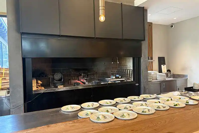 特徴的なのは、飯能市の森林から伐採された間伐材の薪を使った巨大な薪火窯。立ち上がる炎と煙で焼き上げられた食材は、香ばしさと薫香をまとい、奥深い味わいに…♪