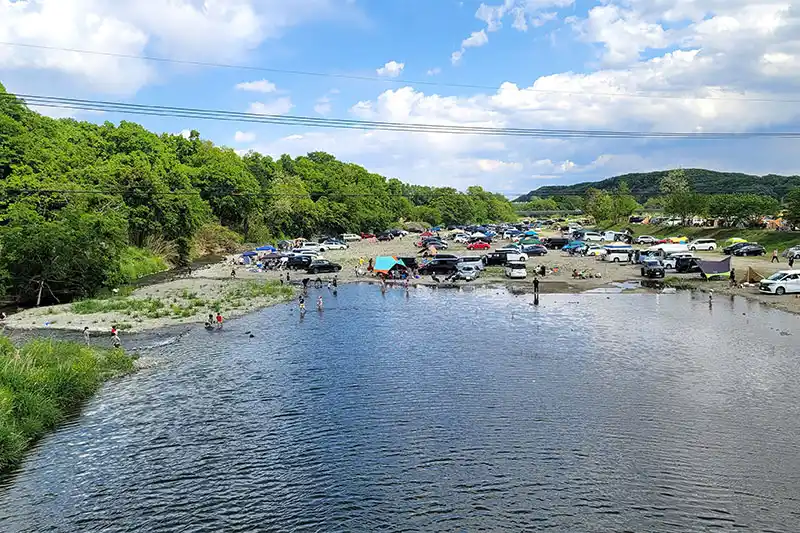 都心から約1時間のらんざん都幾川学校橋広場は、ソロでもファミリーでも仲間でも楽しめます。