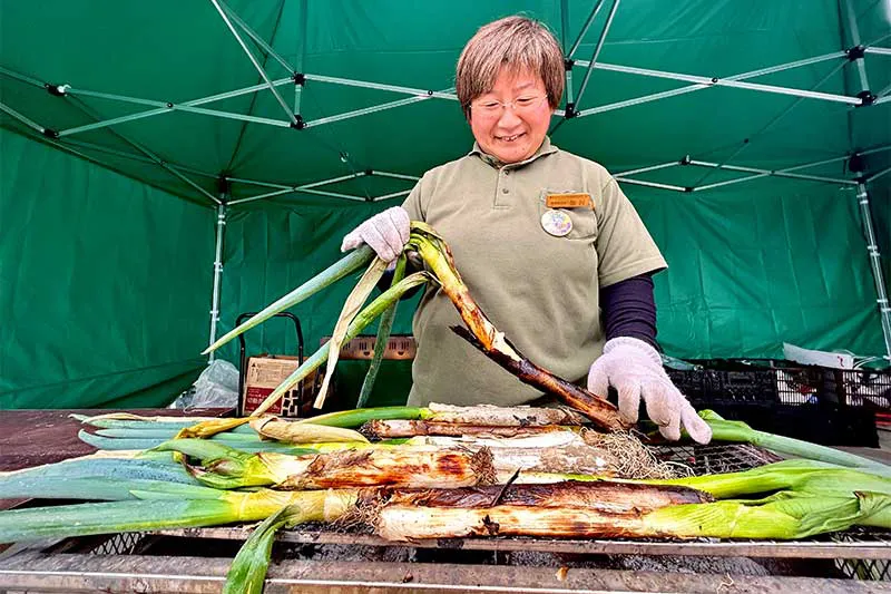 深谷といえば「深谷ねぎ」一番おいしくなる冬の時期、炭火でじっくりとまるごと1本焼き上げた「深谷カルソッツ」が食べられます(土日祝)※12月~3月頃の予定