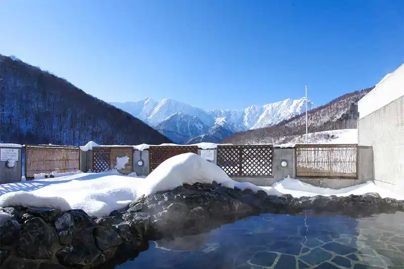 スキー場直結の「セントラルプラザ1130」の3Fにあるハイランドスパでは、北アルプスの絶景が望める露天風呂があります。リフト券、またはポケモン券提示で無料でご利用いただけます。