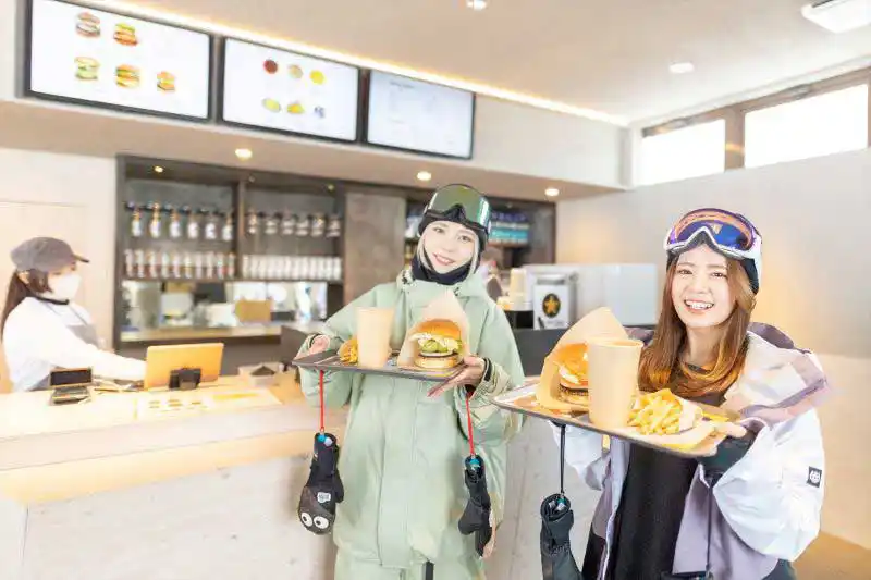 ハンバーガーショップ「Spirits Grill 」で、販売している信州ジビエバーガーは、信州産の鹿肉を使用しており、ランチで人気なおススメメニューです。ジビエ肉は高たんぱく低カロリーなことで有名なため、健康意識が高い女性に人気なお肉です。また店内からは、竜王スキーパークのメインゲレンデや竜王山を一望でき、雪景色を見ながらドリンクやお食事を堪能することができます。店内がシックで落ち着いた雰囲気にもなっているので、スキーやスノボのお客様にはピッタリな休憩場所です。
