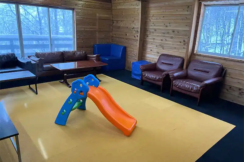 キッズランドには動く歩道と床暖完備のプレイルームが完備され初めてスキーを履くお子様の練習や雪遊びに最適。