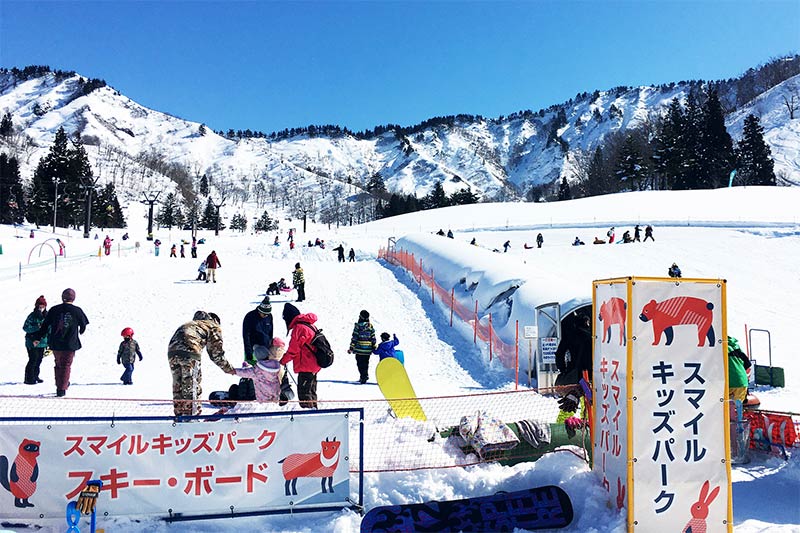関越道湯沢I.C.より約10分、JR越後中里駅直結で車、電車ともにアクセス良好。初級者やファミリーでも安心の幅広の緩斜面から、非圧雪の急斜面までコースバラエティーが豊富。スノーエスカレーター付の「スマイルキッズパーク」では雪遊び、そり遊び、スノーチュービングが楽しめ、スノーエスカレーター2台を完備した「エンゼルゲレンデ」ではスキー・スノーボードデビューに最適。場内には随所にフリースペースがあり、快適に1日を楽しめる。